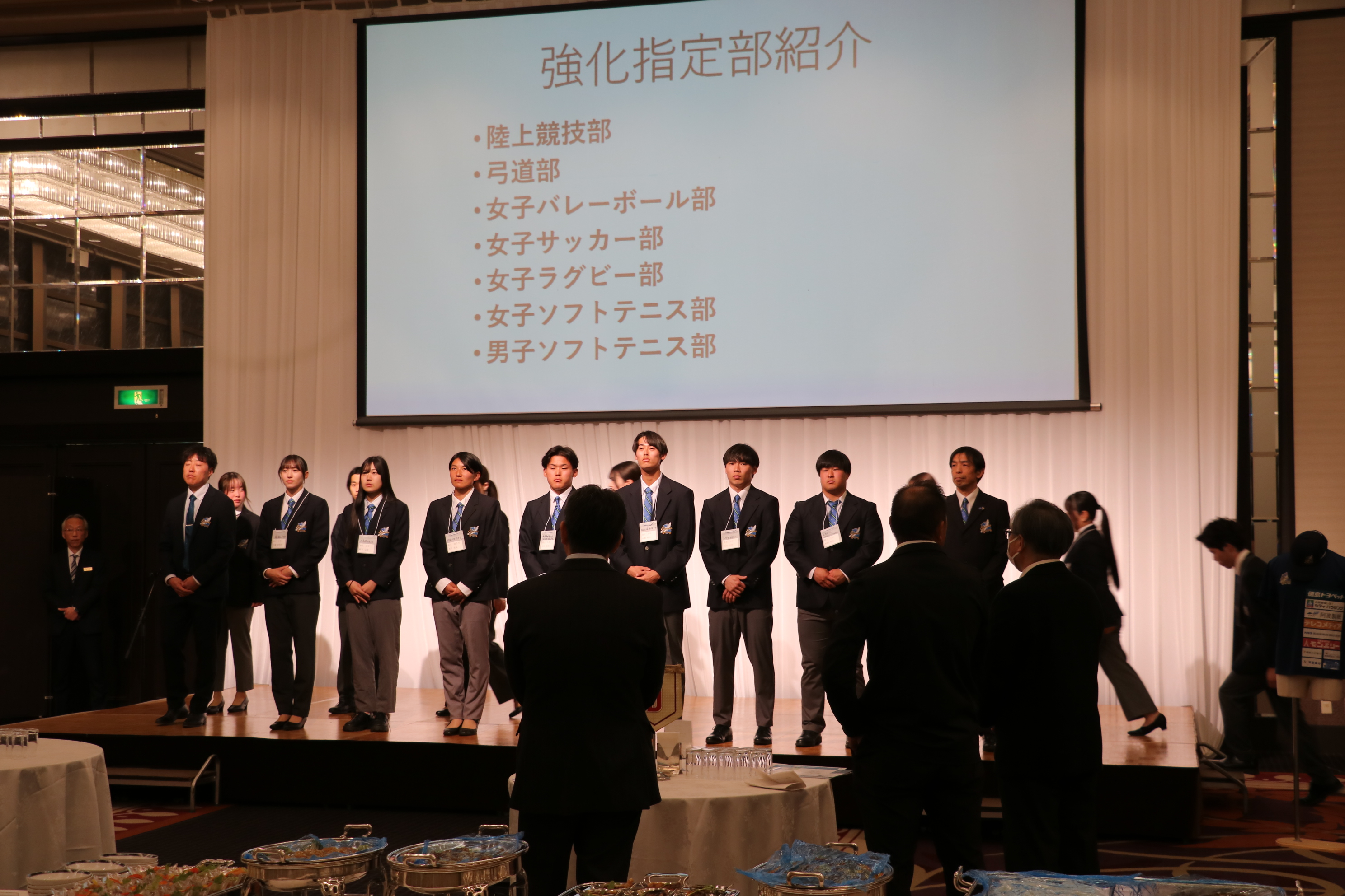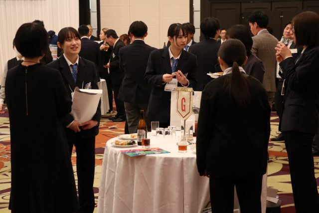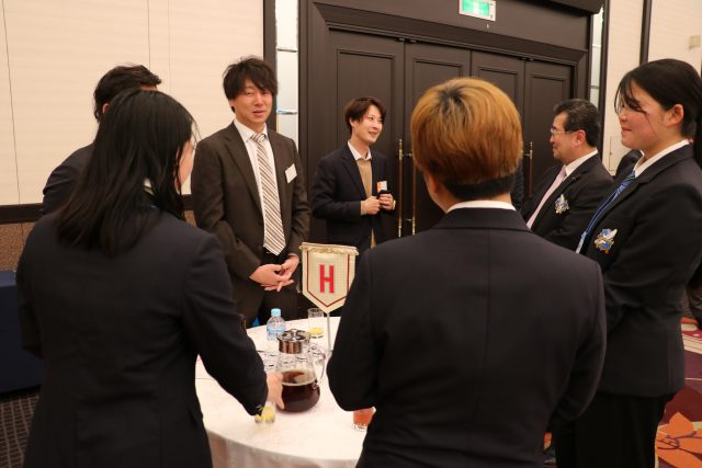 各強化指定部の活動概要や戦績を紹介・展示した上で、立食懇談形式で約50名の学生がご来場の方々に日頃のご支援・ご声援に対する感謝を述べ、各部の活動状況を報告することに加え、各企業・団体から学生に対する激励や活動内容の紹介をいただくなど、充実した情報交換の場となりました。