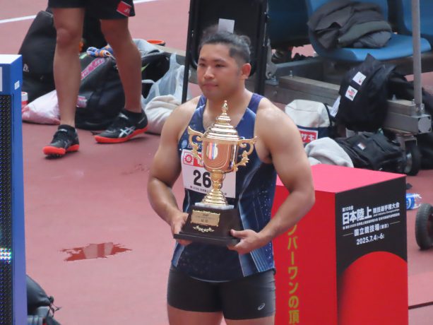 第109回日本陸上競技選手権 「男子円盤投げ 優勝 幸長慎一選手」、「女子走幅跳 準優勝 木村美海選手」