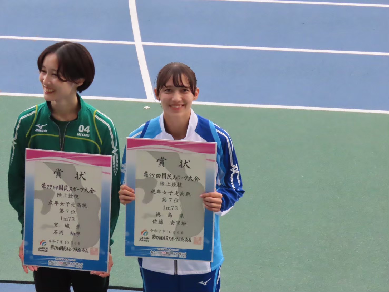 10/3(金)~7(火)に滋賀県の平和堂HATOスタジアムにおいて「第79回国民スポーツ大会」が開催され、本学から徳島県代表選手として佐藤安里紗(メディア3)が成年女子走高跳に出場しました!