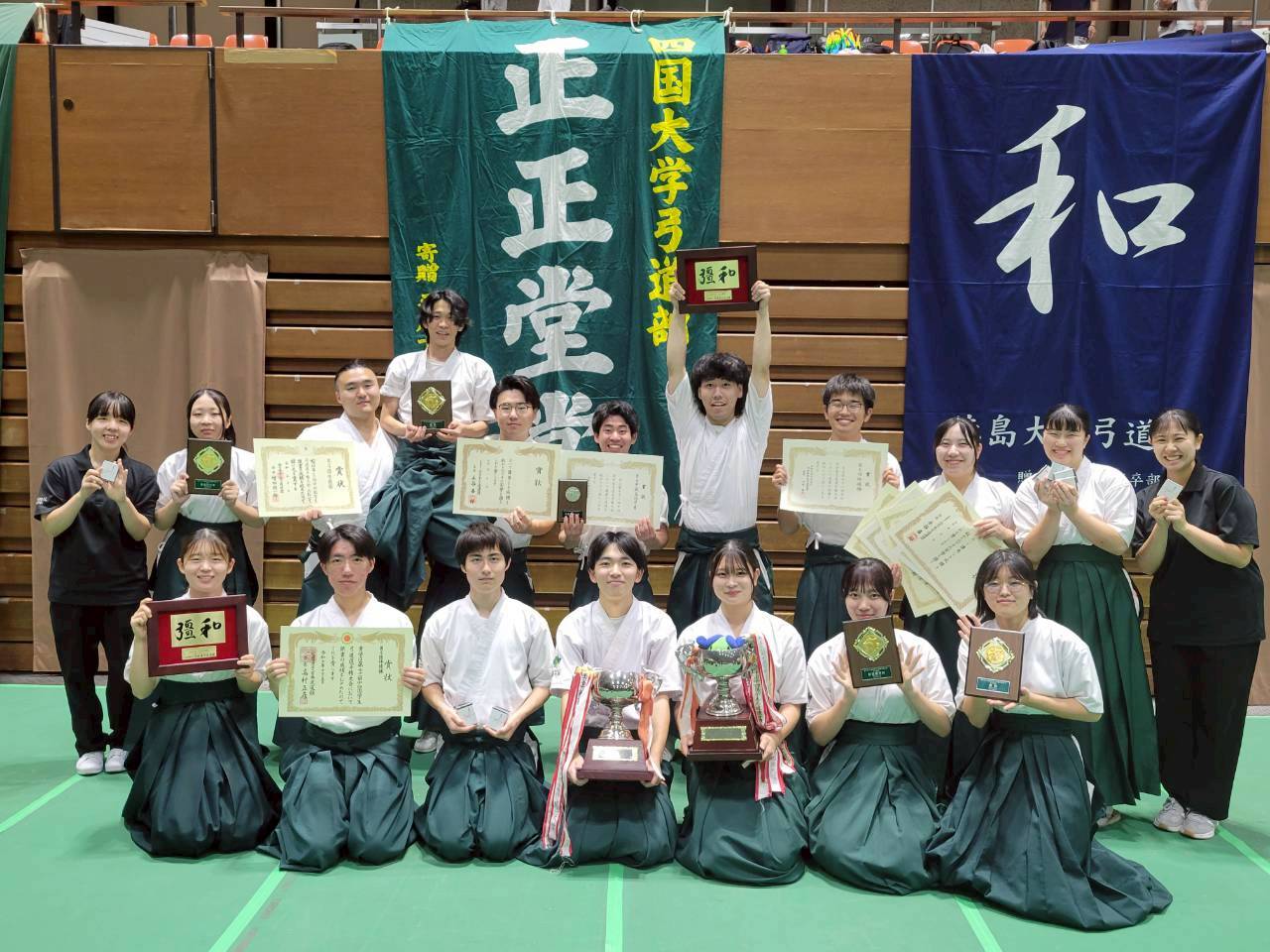 団体戦では男女とも2年ぶりに優勝し、その結果、11月21日から11月24日に三重県伊勢神宮弓道場で行われる「第73回全日本学生弓道王座決定戦男子の部」「第49回全日本学生弓道王座決定戦女子の部」に中四国代表としての出場権を獲得しました。また、令和8年6月の全国大学弓道選抜大会(東京・明治神宮)にも中四国代表として出場権を獲得しました。